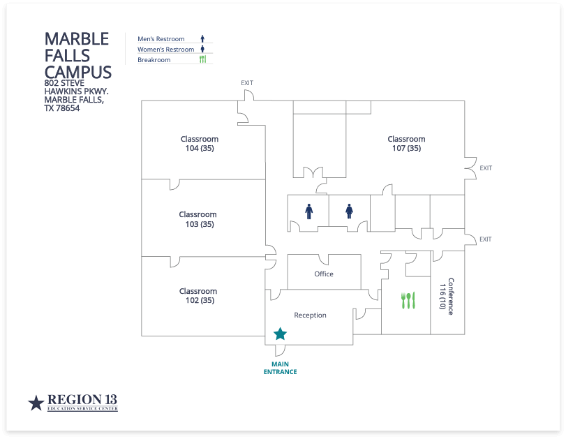 Head northwest of Austin, and you’ll find the Marble Falls Campus, which offers an accessible location for educators across Llano, Gillespie, Burnet, Blanco, Kendall, Travis, and Bell counties. This campus is a convenient option for those living and working in the northwestern region of Central Texas who want access to the same exceptional training offered at our main campus.